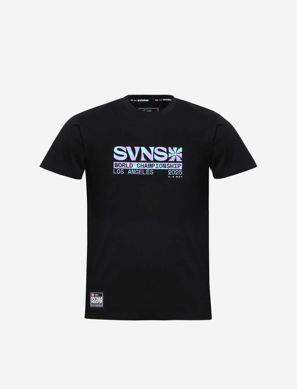 Celebrate the rugby SVNS with the Global Tour T-Shirt. In a white colourway, this T-Shirt illustrates the complete tour with all 8 venues each event is held. With the SVNS branding to the left chest and a crew neckline for maximum comfort, this piece of merchandise is perfect for any rugby fan. 100% Cotton